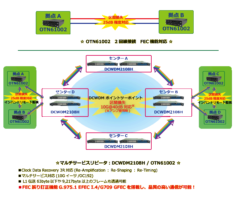 ポイントツウポイントアプリケーションまたはDCWDM2108Hシリーズを用いたアプリケーションでリモート端末としても動作します。